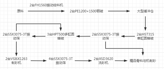 我们以多个厂家设计并成功运行的案例为例,为大家介绍几种时产500t左右的碎石制砂生产线配置。